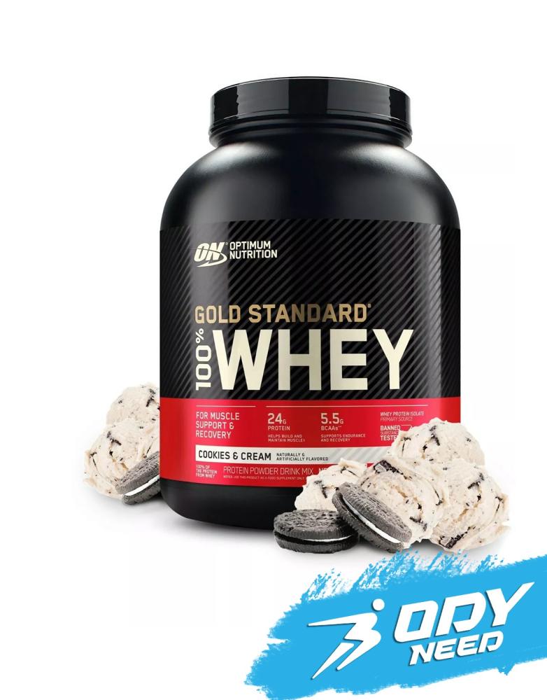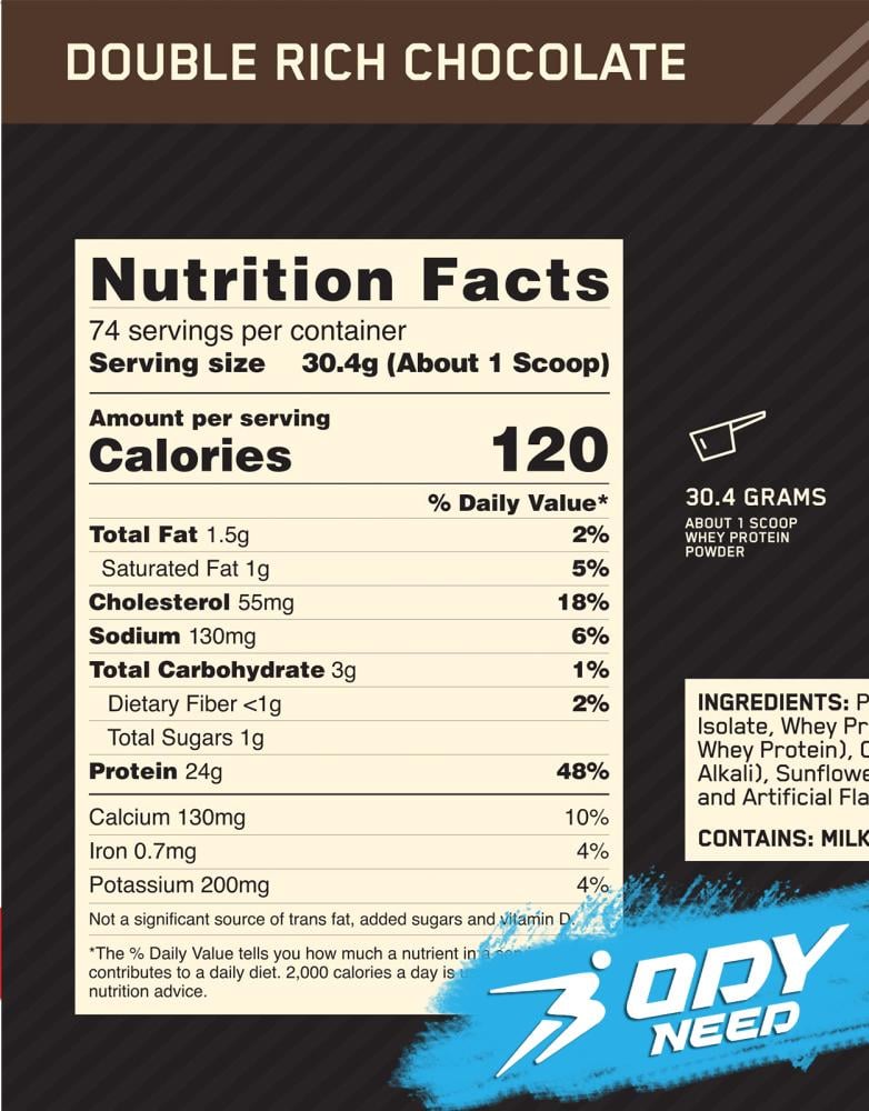 Gold Standard 100% Whey Blend – 24 جم من البروتين المخلوط الذي يتكون من بروتين مصل اللبن المعزول، ومركز بروتين مصل اللبن، وببتيدات مصل اللبن/التحلل المائي لدعم كتلة العضلات الخالية من الدهون. مصدر البروتين الأساسي هو المعزول، ولا يطلقون عليه المعيار الذهبي للجودة من أجل لا شيء.