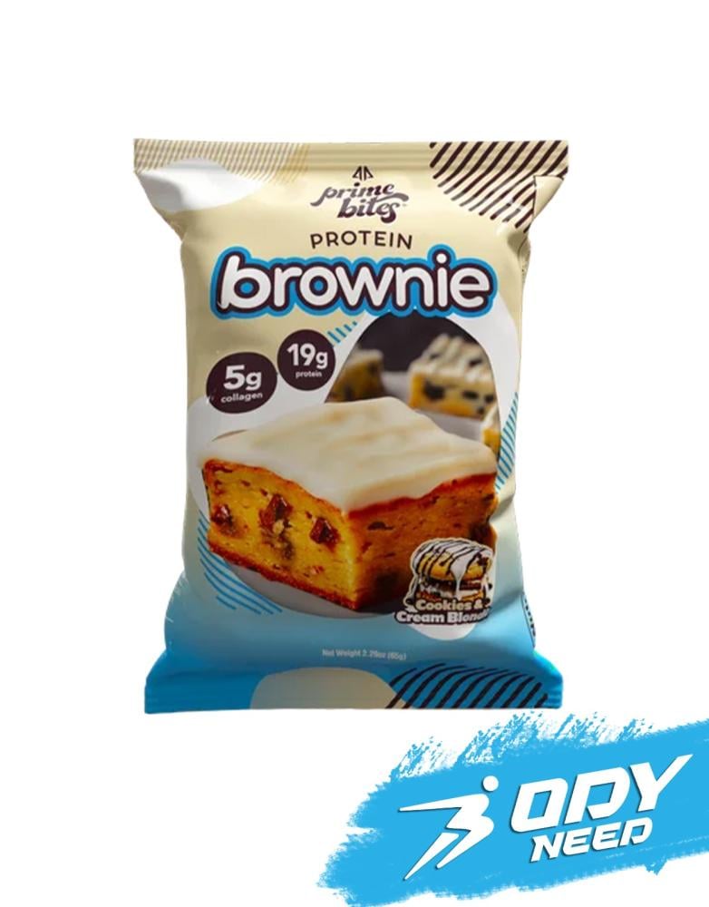 بروتين + كولاجين: غنية بالنكهة والتغذية، تحتوي كل قطعة براوني قليلة السكر من برايم بايتس على 19 غرامًا من البروتين و5 غرامات من الكولاجين. هذه الحلوى اللذيذة مصنوعة يدويًا من بروتين مصل اللبن الممتاز بدلًا من بروتين القمح، مما يمنحك جرعة غنية من الأحماض الأمينية.