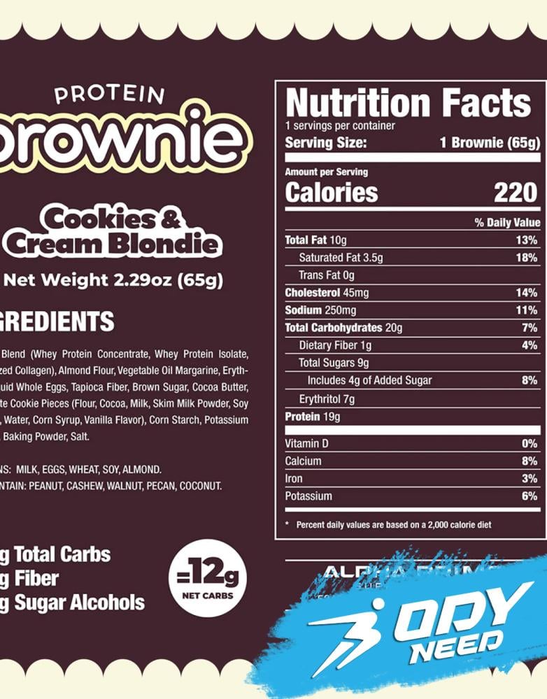 قوام رائع: على عكس معظم ألواح البروتين المجففة، تشتهر براونيز ألفا برايم بايتس وبلونديز بمذاقها الشبيه بالبراوني أو الكيك الطازج، بقوامها الناعم. تحتوي براونيزنا على أقل قدر من الدهون والسكر، مع نسبة سكر أقل بنحو 75% من البراوني العادي، وهي مصنوعة من مكونات صحية.